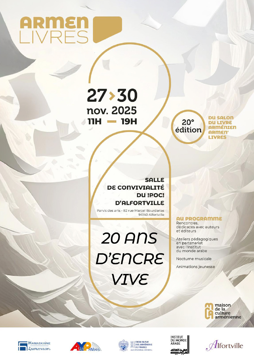 À l’occasion des 20 ans du Salon du livre arménien, la Maison de la Culture Arménienne d’Alfortville vous invite à ARMEN’LIVRES, un salon dédié à la richesse et à la vitalité de la littérature arménienne.