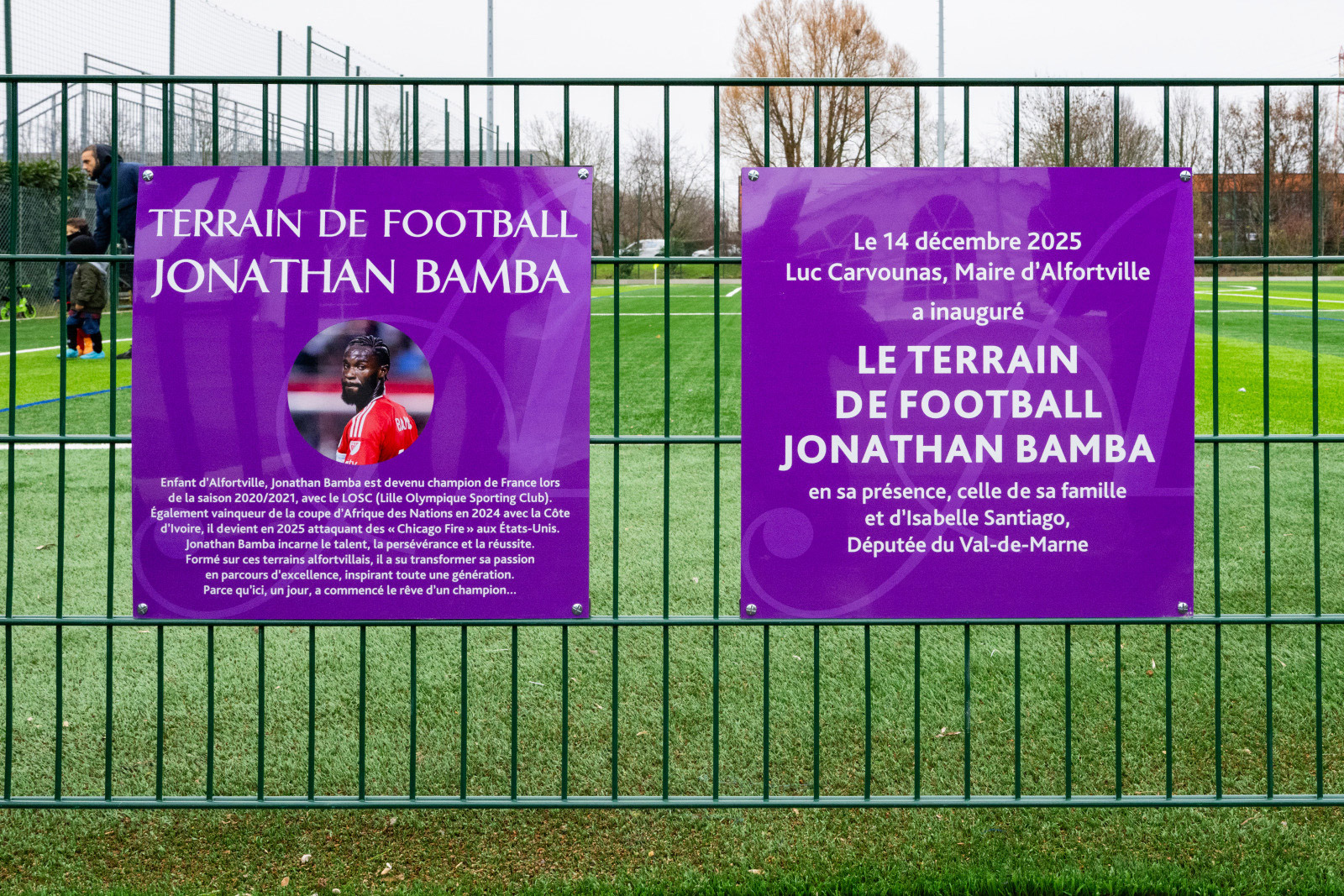 Terrain de football synthétique du Val-de-Seine, il a été inauguré le 14 décembre 2025 à l’occasion du retour de Jonathan Bamba à Alfortville. Il porte son nom en reconnaissance de son parcours sportif d’excellence, d’enfant de la commune devenu champion de France.