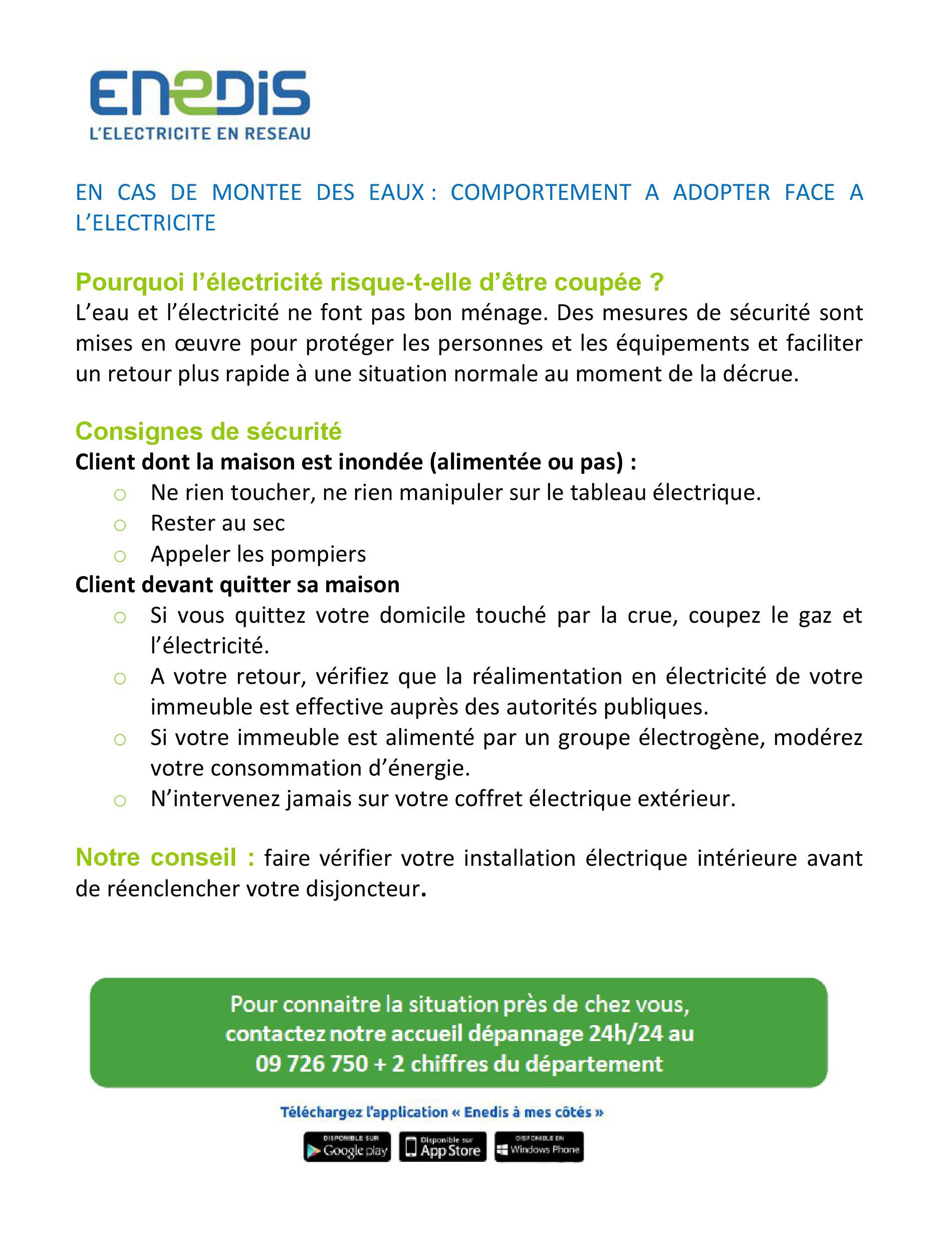 | Retrouvez les conseils de sécurité électrique d’Enedis |