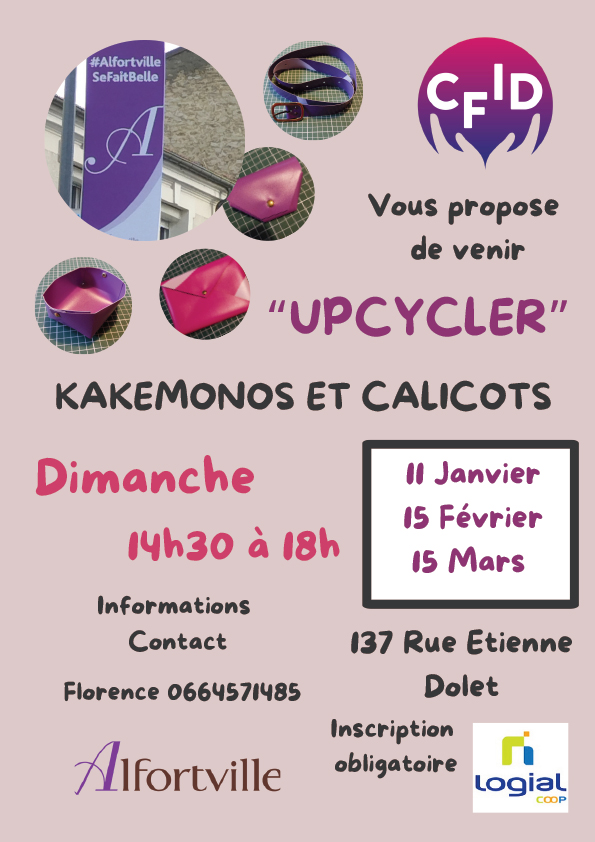 Le C.F.I.D. vous propose un atelier de fabrication d’objets de petite maroquinerie à partir des kakemonos et calicots récupérés après les différentes manifestations de la ville.