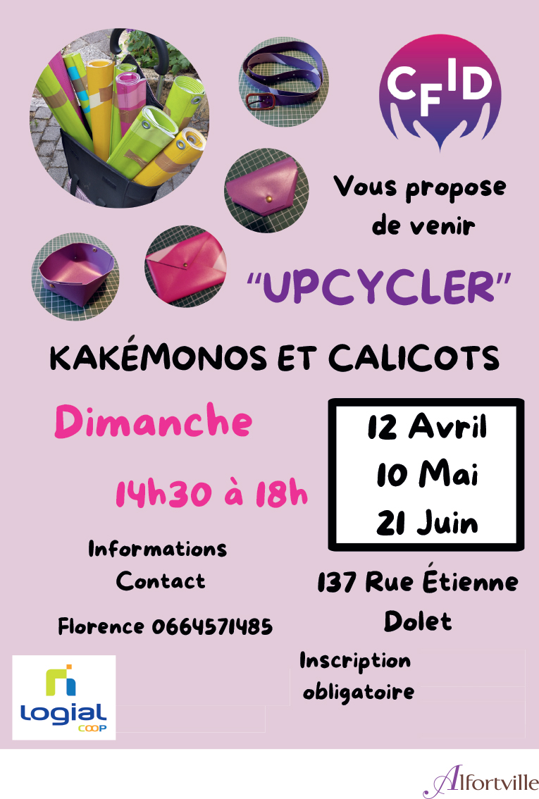 Le C.F.I.D. vous propose un atelier de fabrication d’objets de petite maroquinerie à partir des kakemonos et calicots récupérés après les différentes manifestations de la ville.