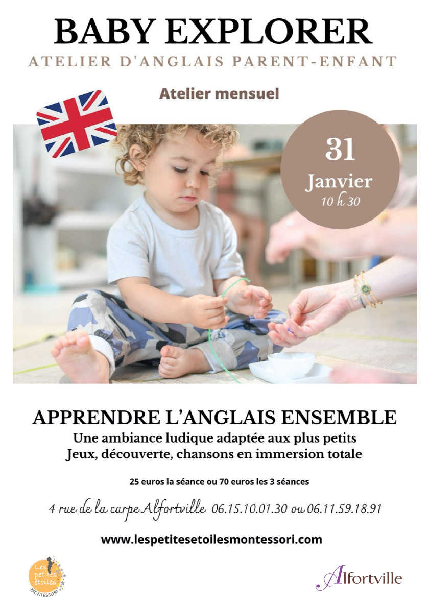 Le samedi 31 janvier de 10h30 à 11h30, Les petites étoiles Montessori vous propose un atelier immersif d’anglais parent-enfant en petit groupe.