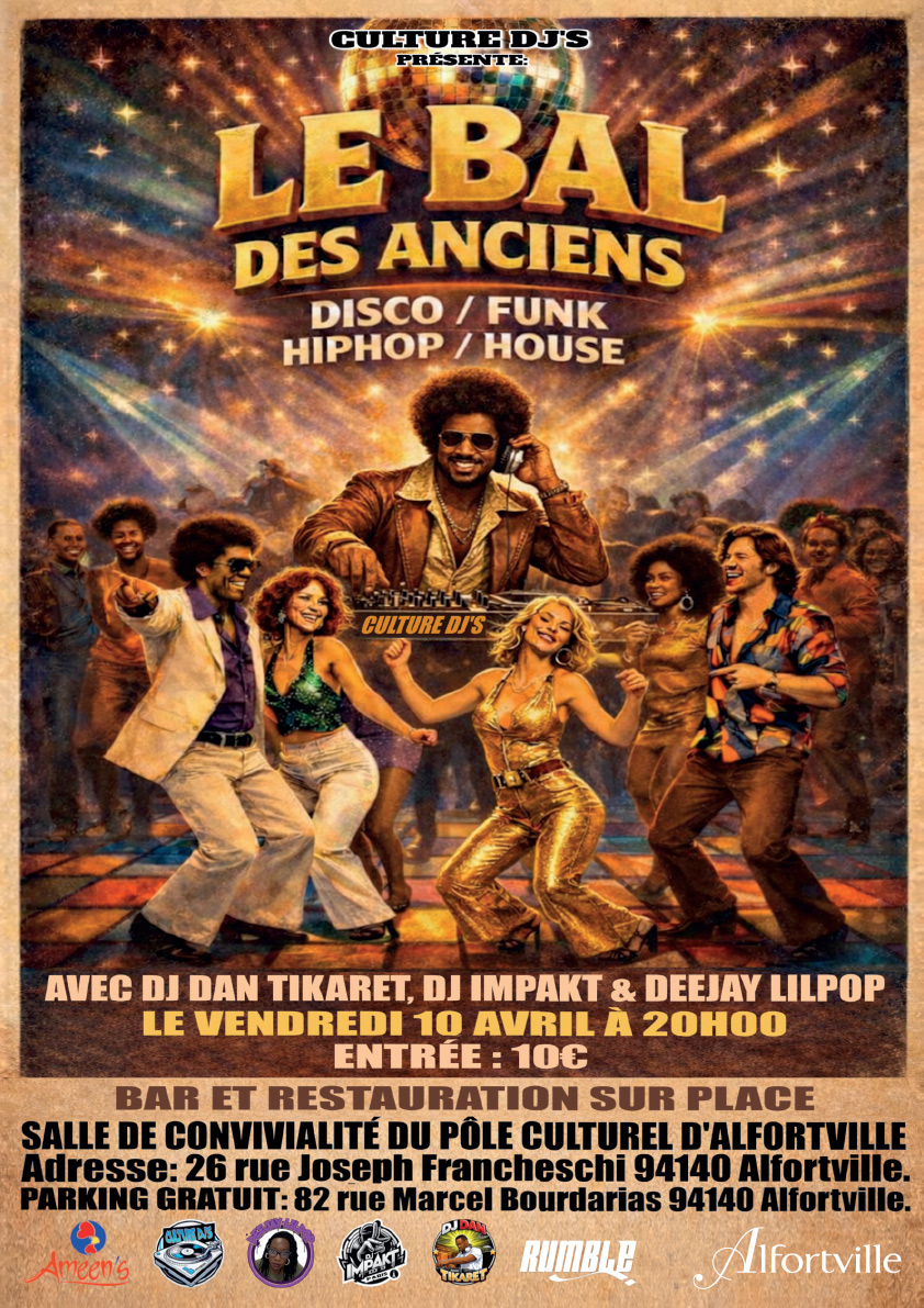 L’association Culture DJs présente Le Bal des Anciens, une soirée dédiée aux musiques disco, funk, hip-hop et house.
