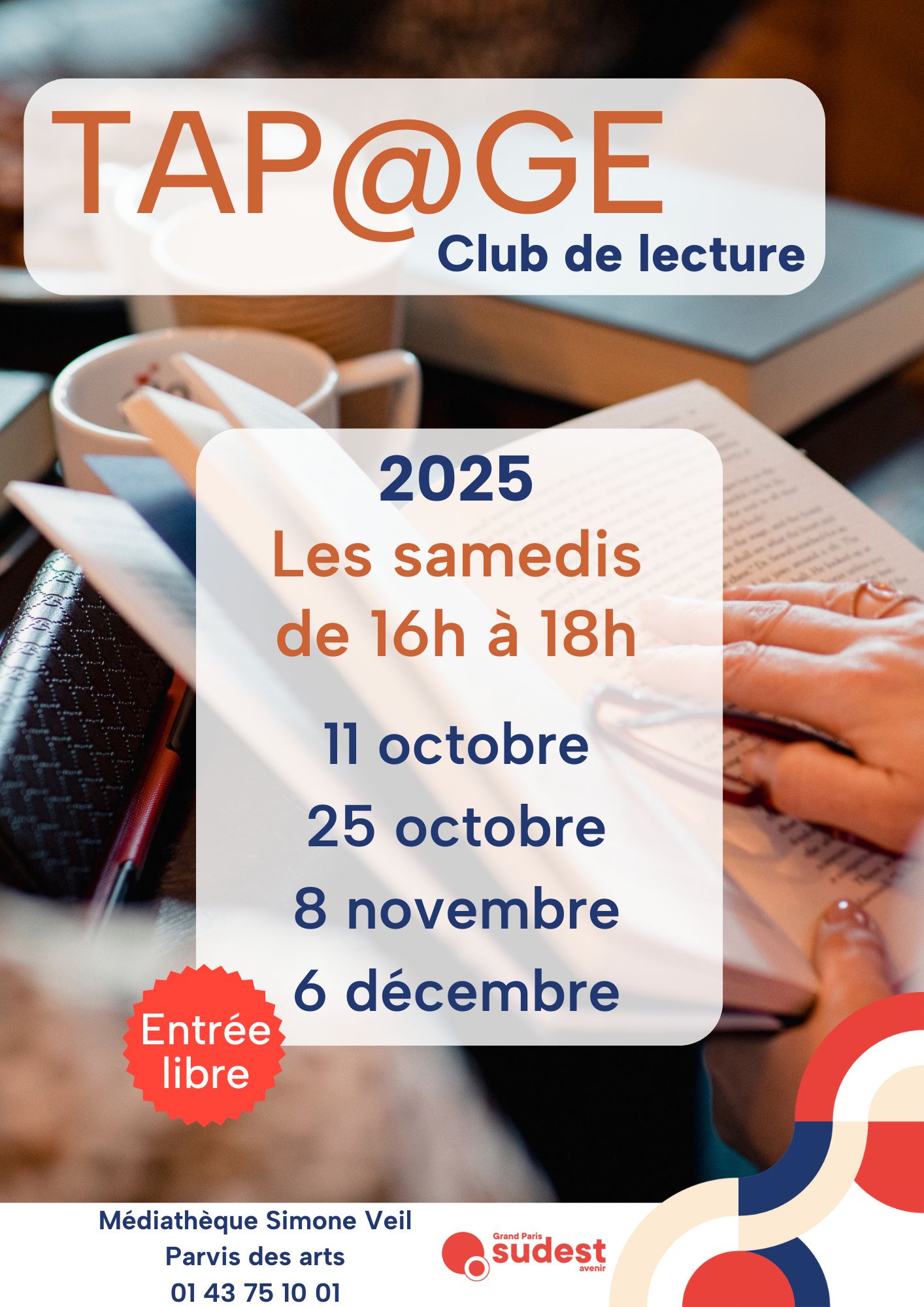 La médiathèque Simone Veil organise un club de lecture les samedis 11 & 25 octobre, 8 novembre et 6 décembre 2025 de 16 à 18h.