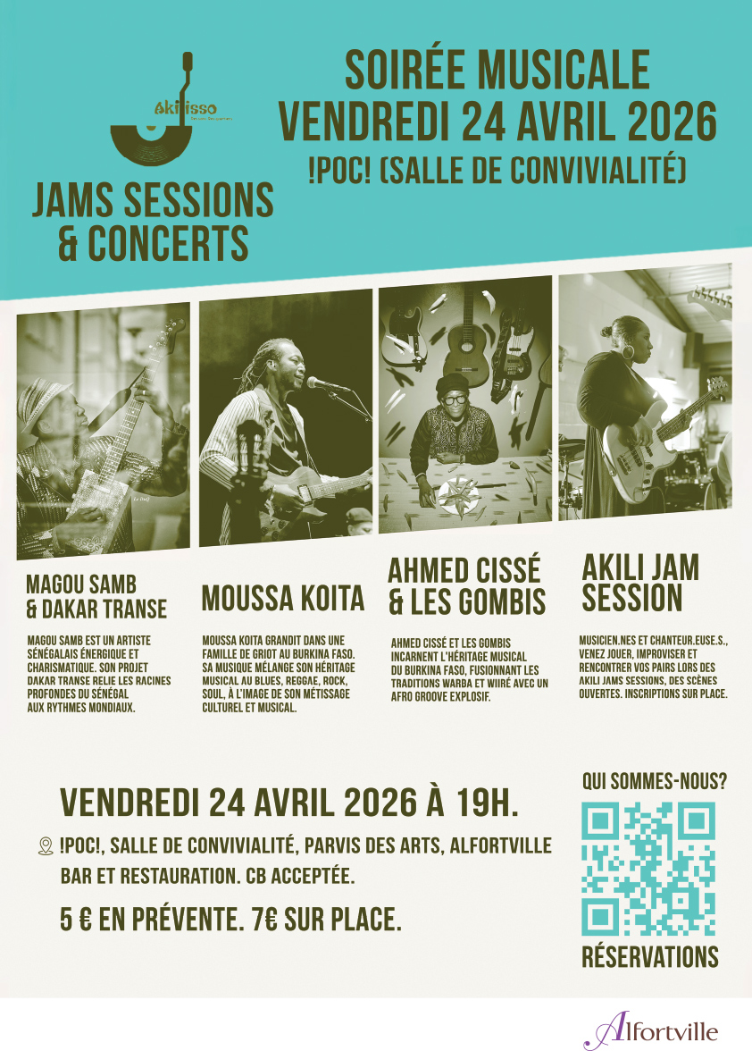 Pour cette soirée, retrouvez les Akili Jams Sessions et plusieurs concerts, qui seront l’occasion de découvertes musicales et de rencontres artistiques.