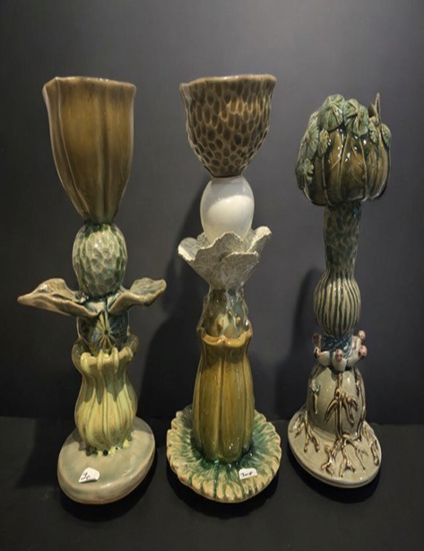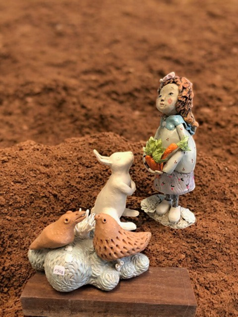 Des sculptures dans une ligne plutôt poétique et onirique et cours de céramique.