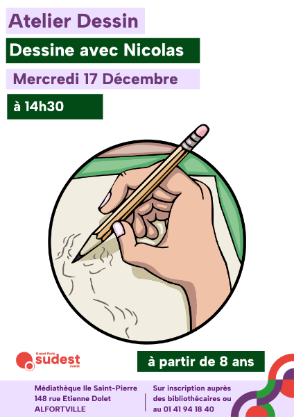La médiathèque Île St. Pierre vous invite à un atelier dessin proposé par Nicolas, bibliothécaire.