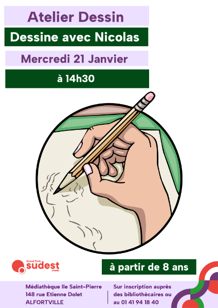 La médiathèque Île St. Pierre vous invite à un atelier dessin proposé par Nicolas, bibliothécaire.