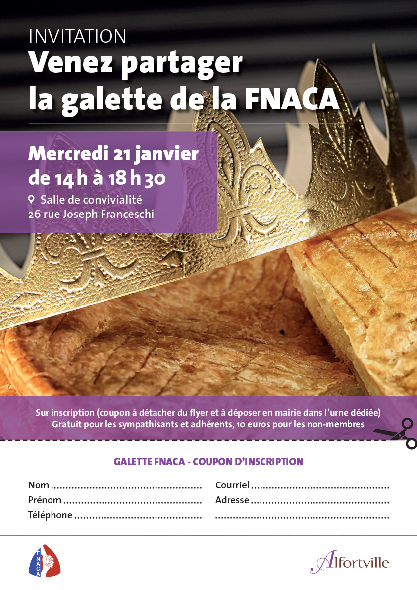 Le comité d’Alfortville de la Fédération Nationale des Anciens Combattants de la guerre en Algérie et des combats au Maroc et en Tunisie vous invite à partager une galette des rois.