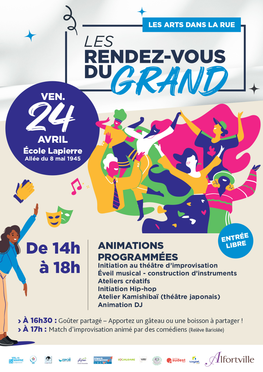 Le 24 avril, le projet "Les Rendez-vous du Grand", une initiative de la Ville d’Alfortville fêtent les arts avec une édition spéciale « Les Arts dans la Rue ».
