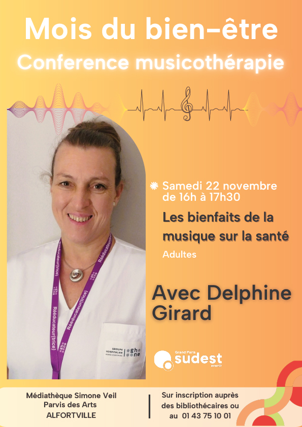 Une conférence animée par Delphine GIRARD musicothérapeute afin de découvrir les bienfaits de la musique sur lasanté physique et mentale pour tous