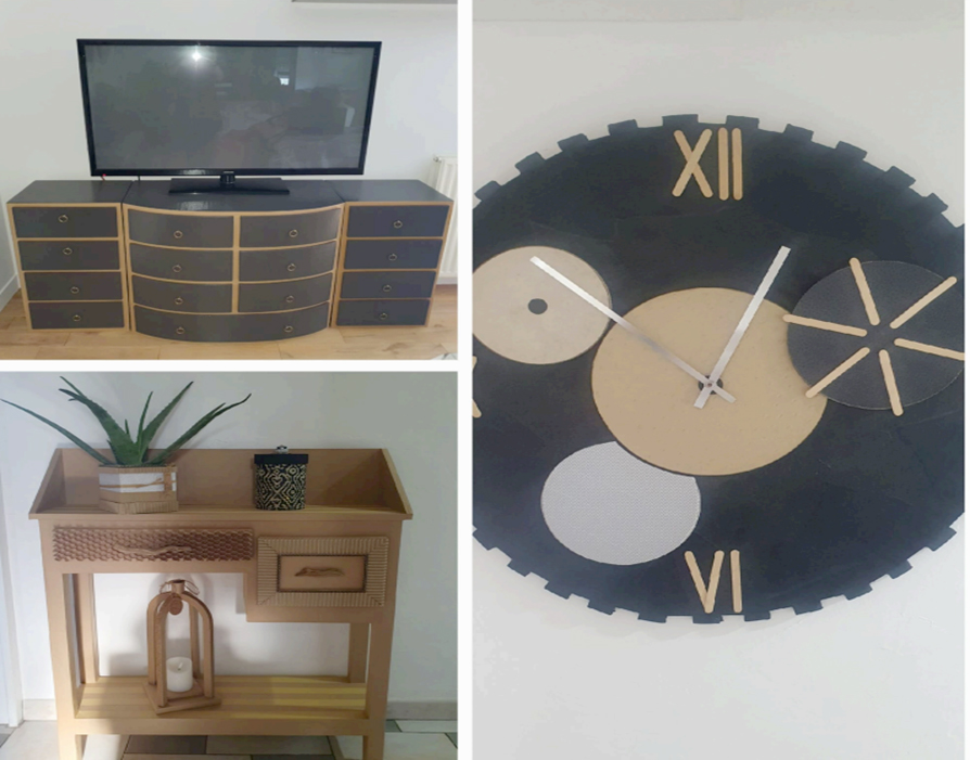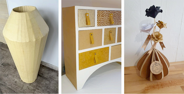 Ainsi, son objectif est de valoriser le carton afin de le transformer en meubles d’intérieur uniques, légers et solides ainsi qu’en objets de décoration sur-mesure, tel qu’une lampe ou un miroir par exemple.