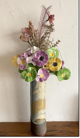 Toutes les céramiques de la créatrice sont des pièces uniques, fabriquées, émaillées et/ou patinées à la main. Les pièces sont réalisées en grès, en raku ou en porcelaine.