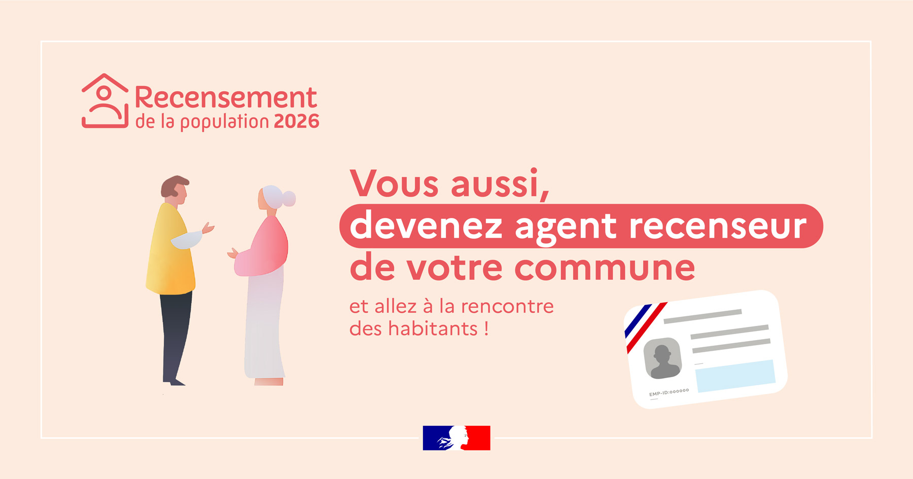 Un agent recenseur recruté par la mairie se présentera chez vous muni de sa carte officielle. Il vous remettra la notice sur laquelle figurent vos identifiants pour vous faire recenser en ligne.