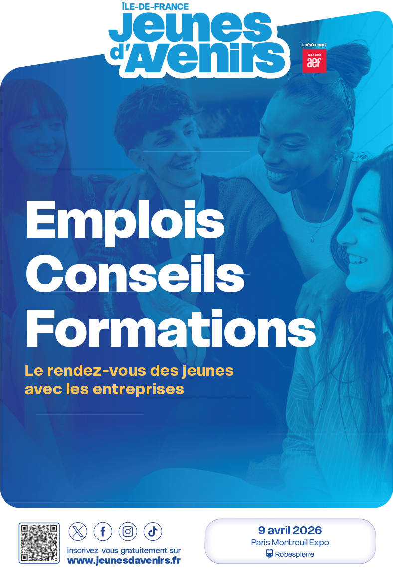 Le salon Jeunes d’Avenirs Île-de-France vous donne rendez-vous le 9 avril 2026 de 9h à 18h au Paris Montreuil Expo pour une journée dédiée à l’insertion professionnelle.