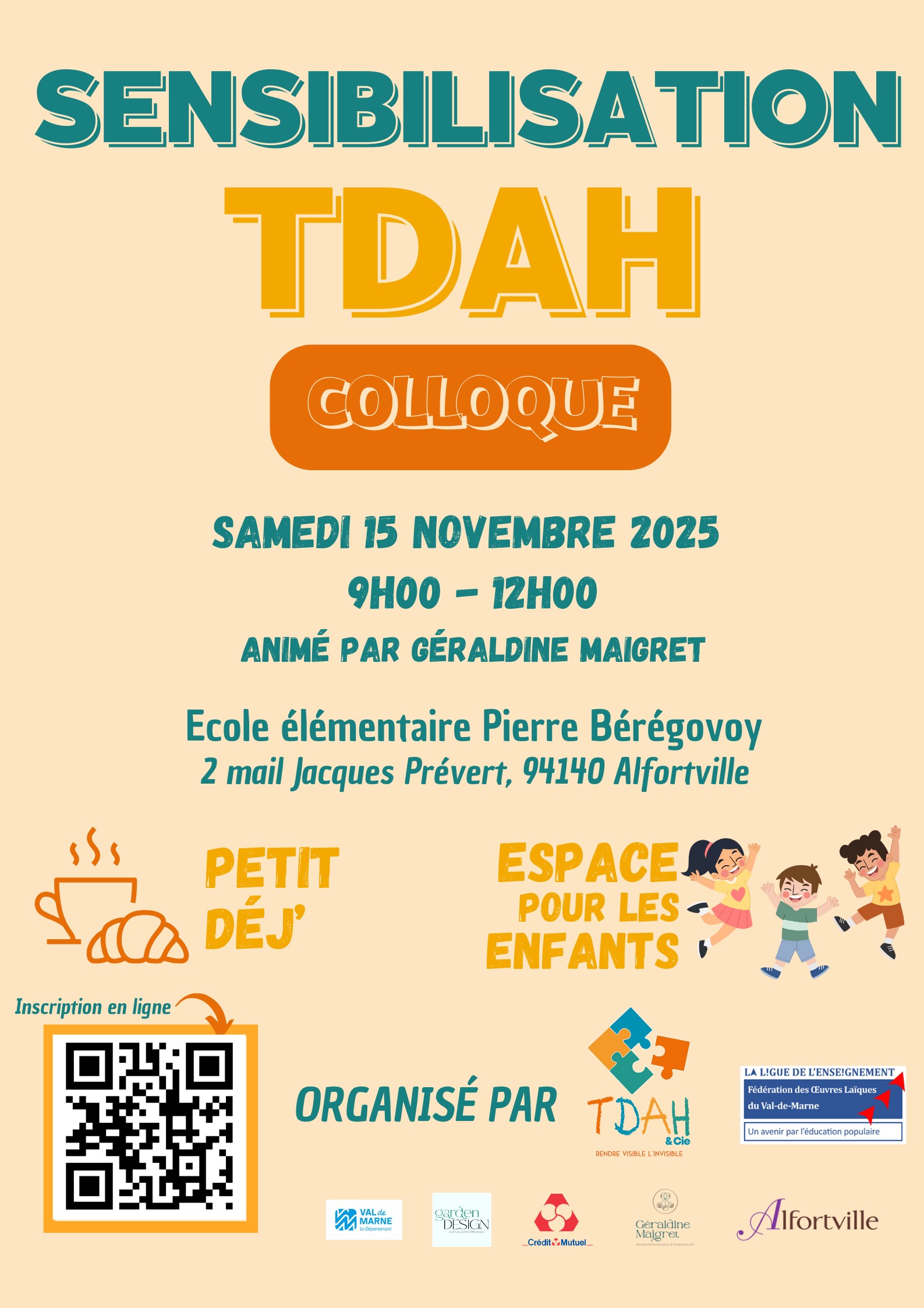 Organisé par TDAH & Cie, avec le soutien de la Ligue de l’enseignement du Val-de-Marne, de Crédit Mutuel et de la Fédération des Œuvres Laïques du Val-de-Marne.