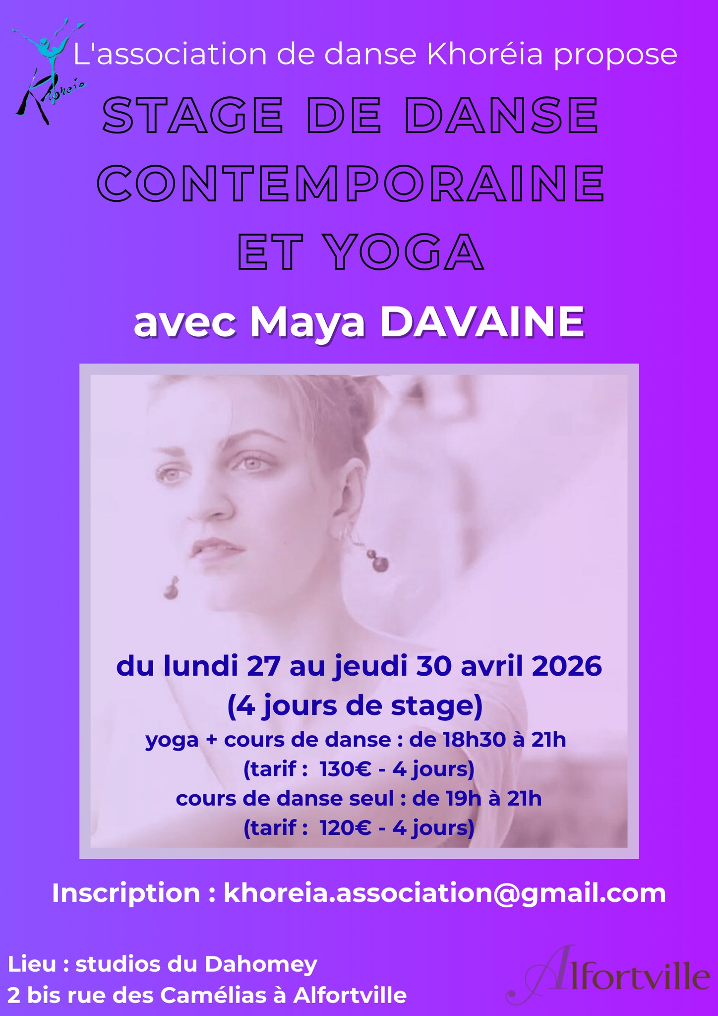 L’association de danse Khoréia propose un stage de danse contemporaine et yoga avec Maya DAVAINE