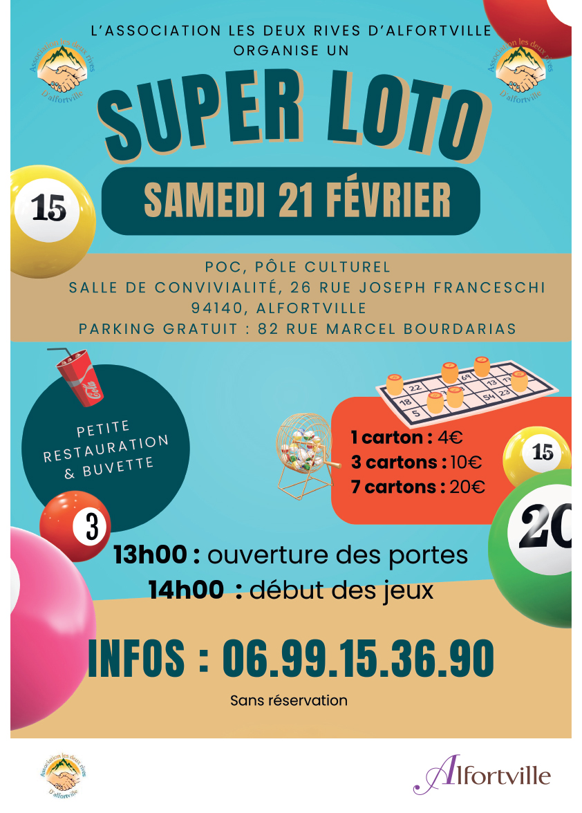L’association les deux rives d’Alfortville vous invite à son super loto.