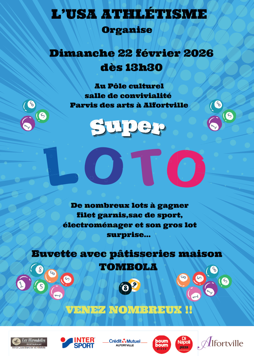 L’association USA Athlétisme d’Alfortville vous invite à son super loto.